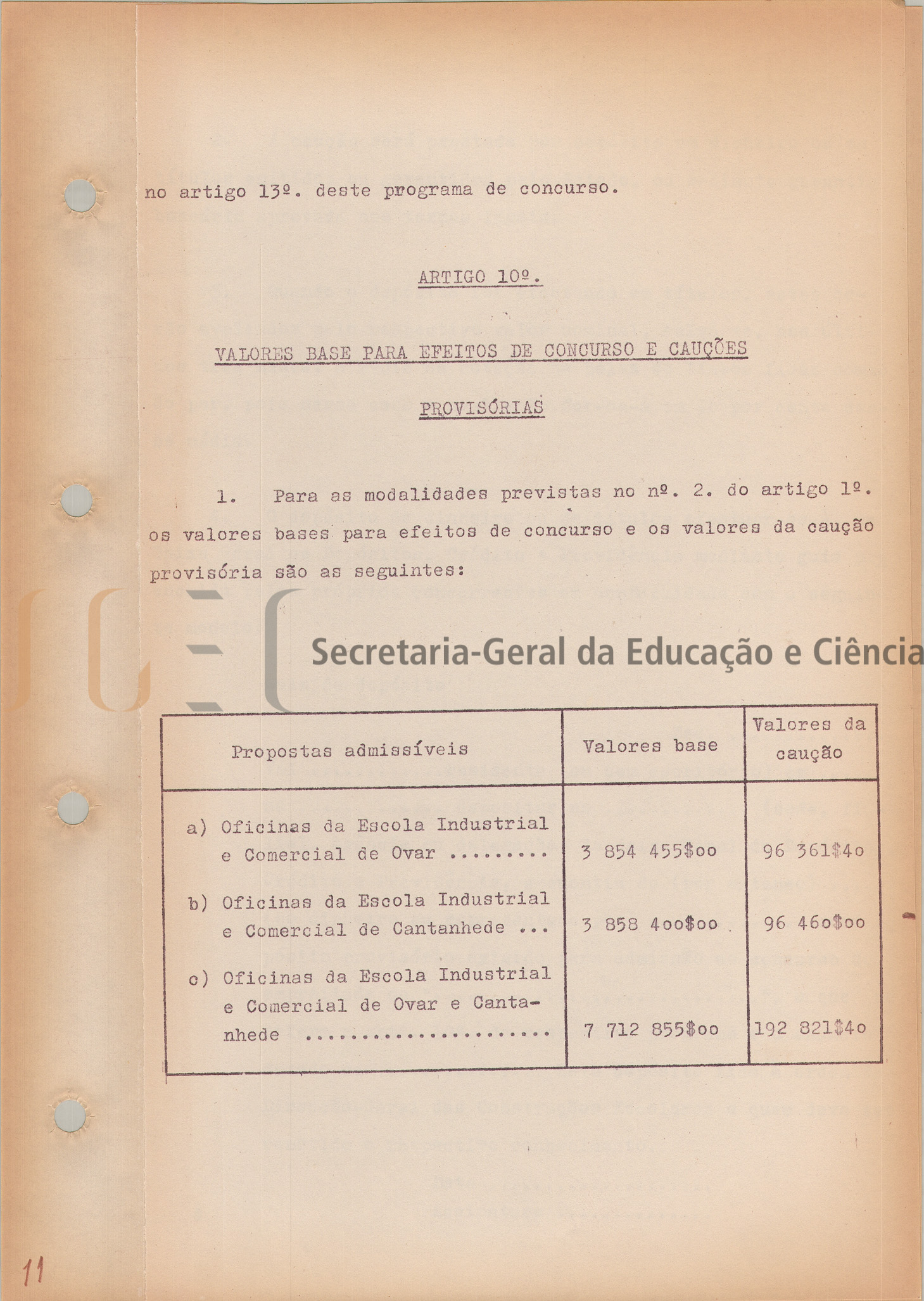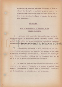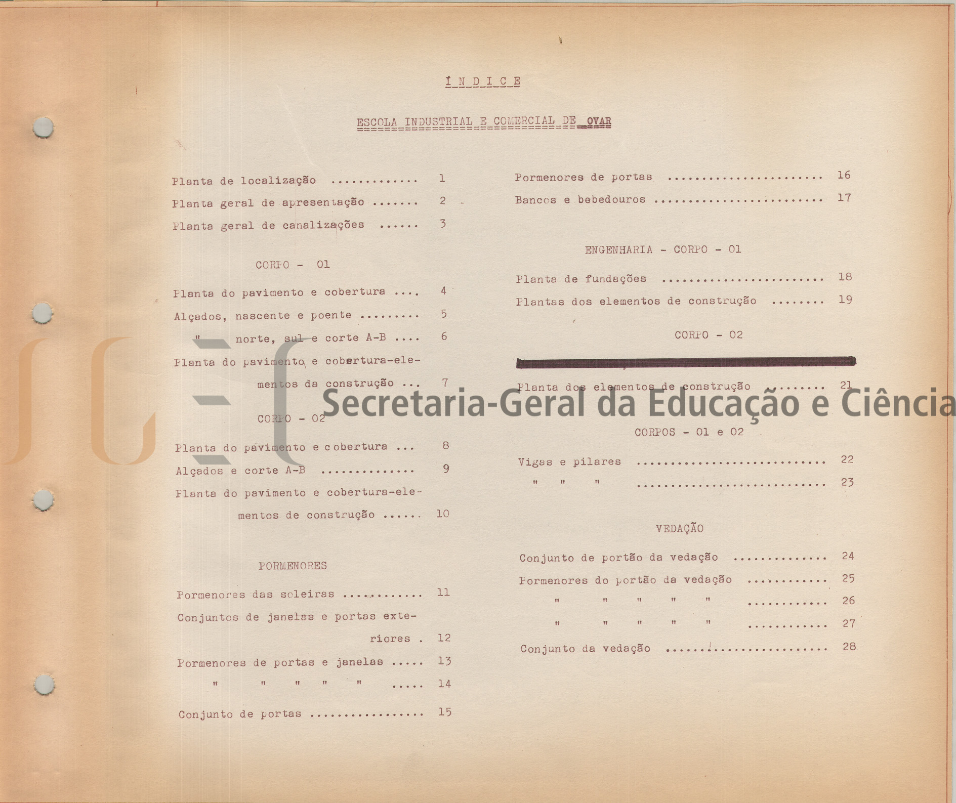 O volume das peças escritas inclui: programa de concurso, da empreitada de construção civil e instalação elétrica das oficinas da Escola Industrial e Comercial de Ovar e oficinas da Escola Industrial de Cantanhede; nota descritiva; mapas de medições; orçamento e caderno de encargos (cláusulas jurídicas especiais e cláusulas técnicas especiais).