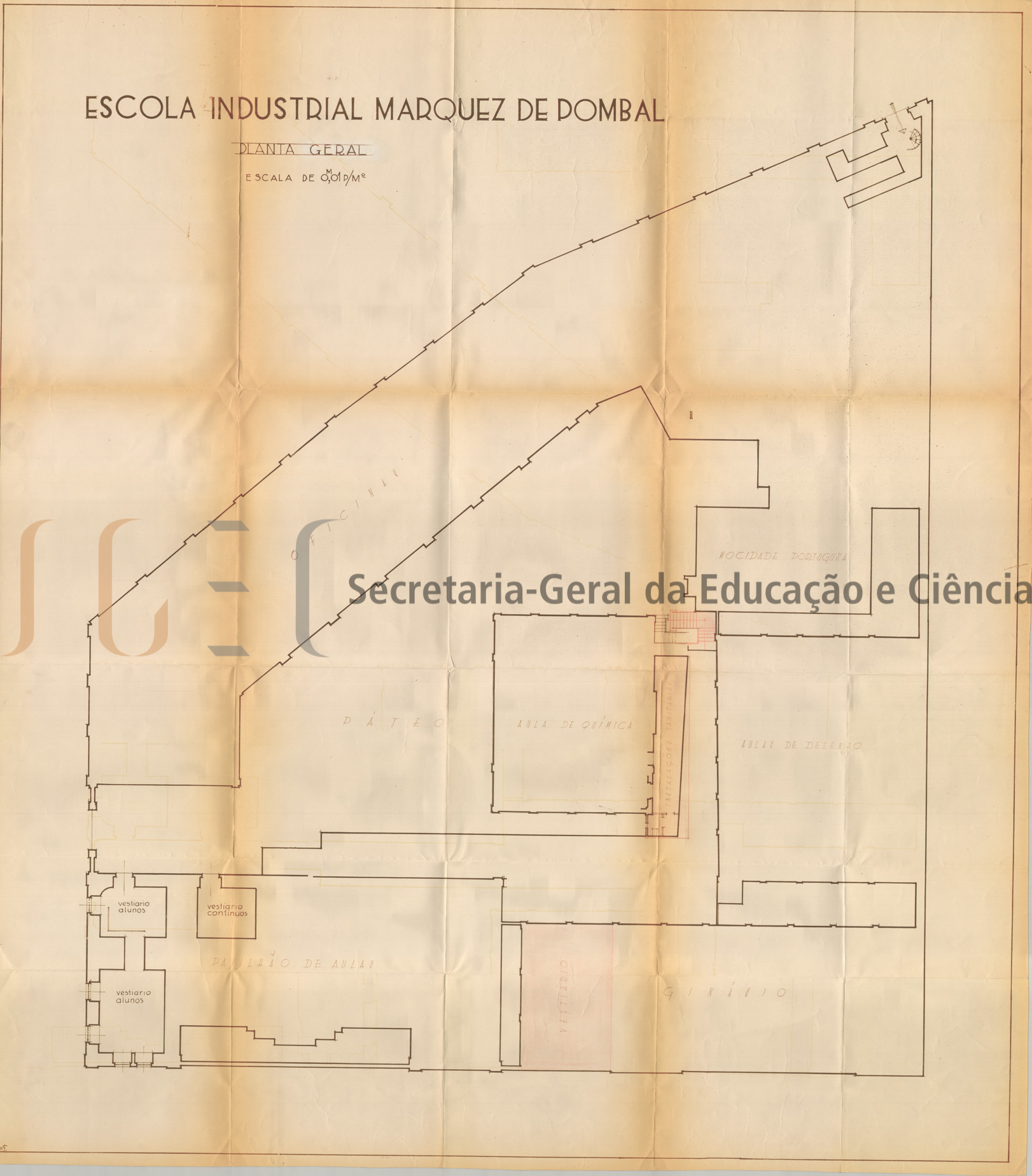 "O volume n.º 543 contém uma pasta referente ao projeto de ampliação / remodelação das retretes da Escola Industrial Marquês de Pombal, composto por processo com a indicação de orçamento, que inclui: memória; medições; orçamento; troca de correspondência e 3 peças desenhadas com planta parcelar e alçado.