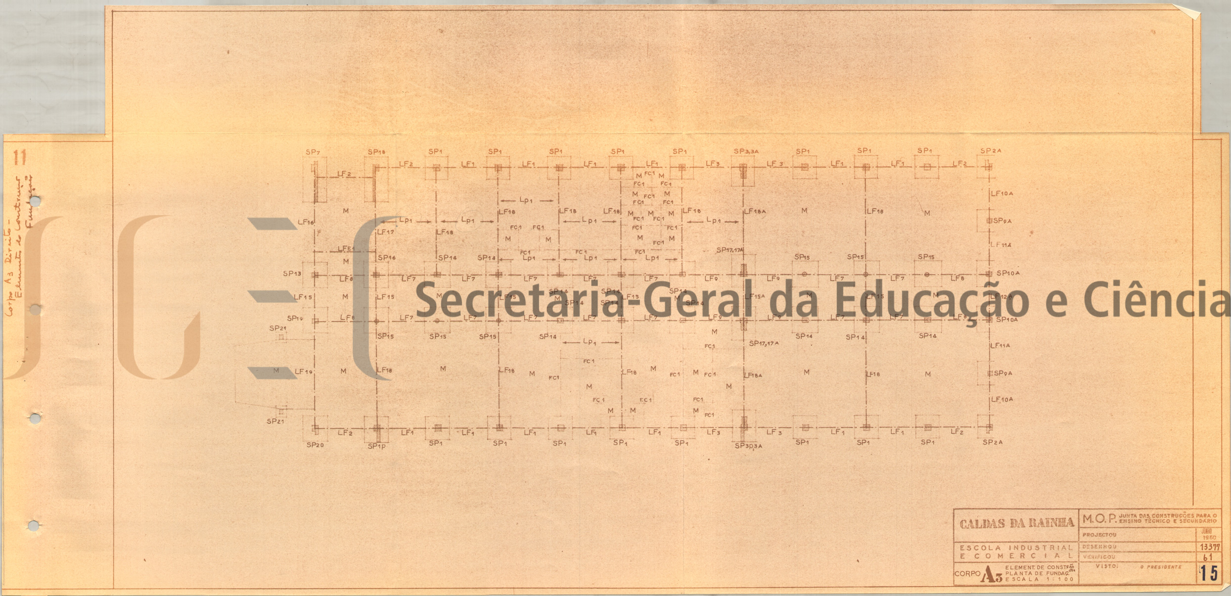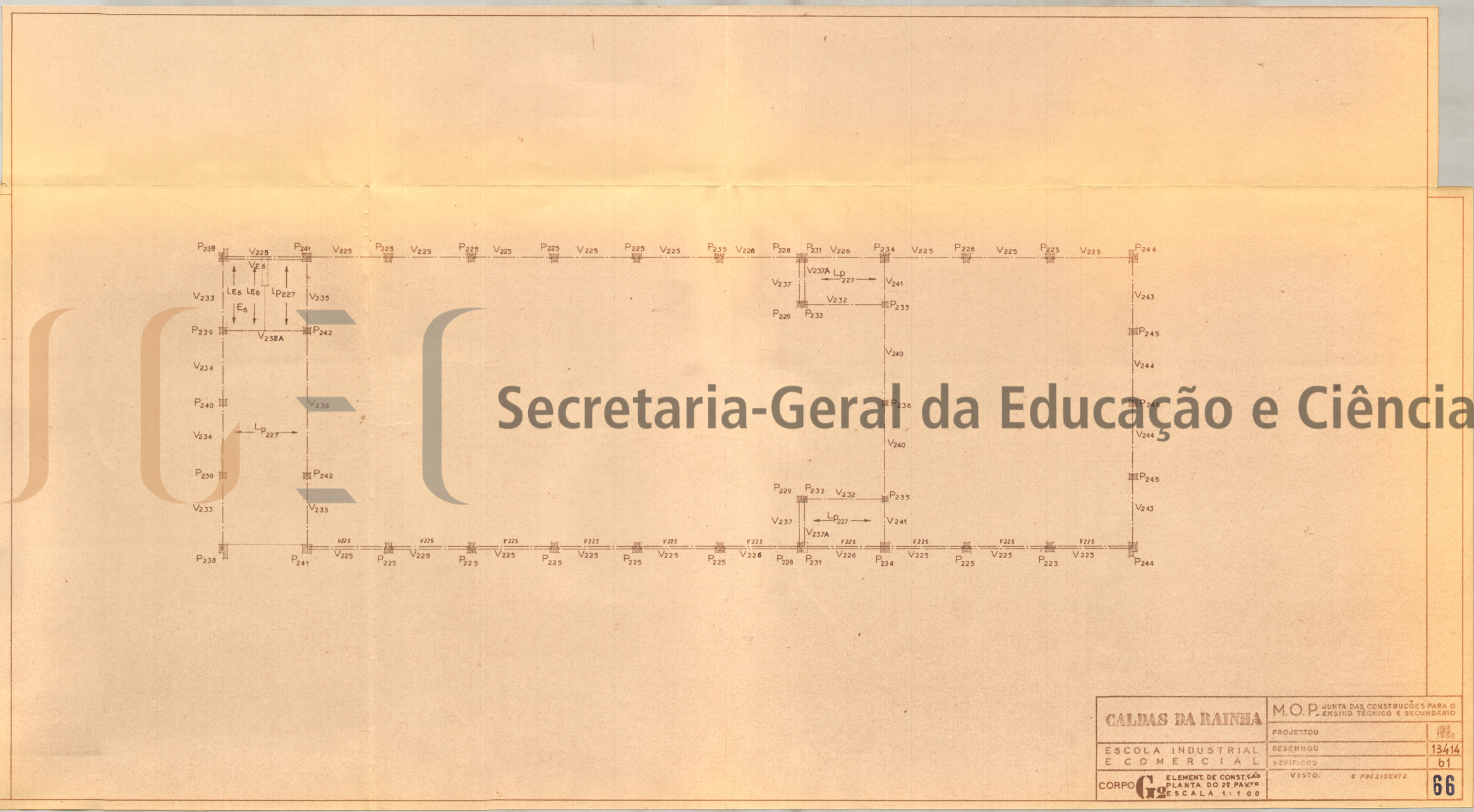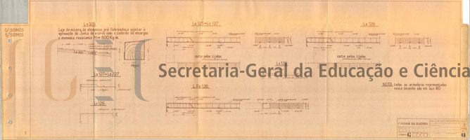 O volume das peças desenhadas é composto por 139 peças e inclui: índice; planta de localização; planta de apresentação; planta de trabalho; plantas dos vários pavimentos; alçados; cortes; cobertura; canalizações; fundações; betão armado e vários pormenores (janelas; caixilharias; portas interiores e exteriores; envidraçados; escadas; sala de aula normal; sala dos professores; biblioteca; cozinha; refeitório; varanda e portão exterior da entrada).