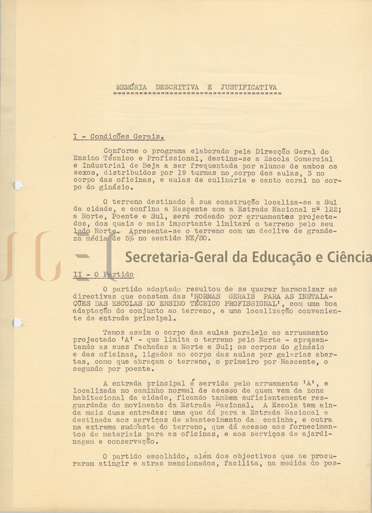 O volume n.º 71 corresponde ao volume final, com toda a informação do anteprojeto e inclui: parecer, com data de homologação de 13 de agosto de 1956; memória descritiva e justificativa; programa de construção da Escola Industrial e Comercial de Beja, de 9 de agosto de 1955; normas gerais para as instalações das escolas do Ensino Técnico Profissional; estimativa de custo, de agosto de 1956 e 12 peças desenhadas, com rubricadas, compostas por: planta de localização; planta geral; plantas dos vários pavimentos; alçados e cortes.