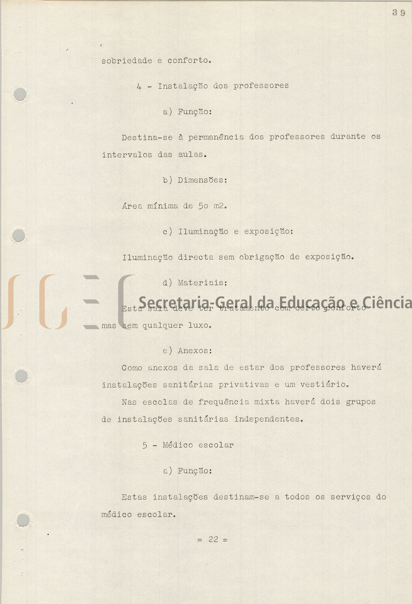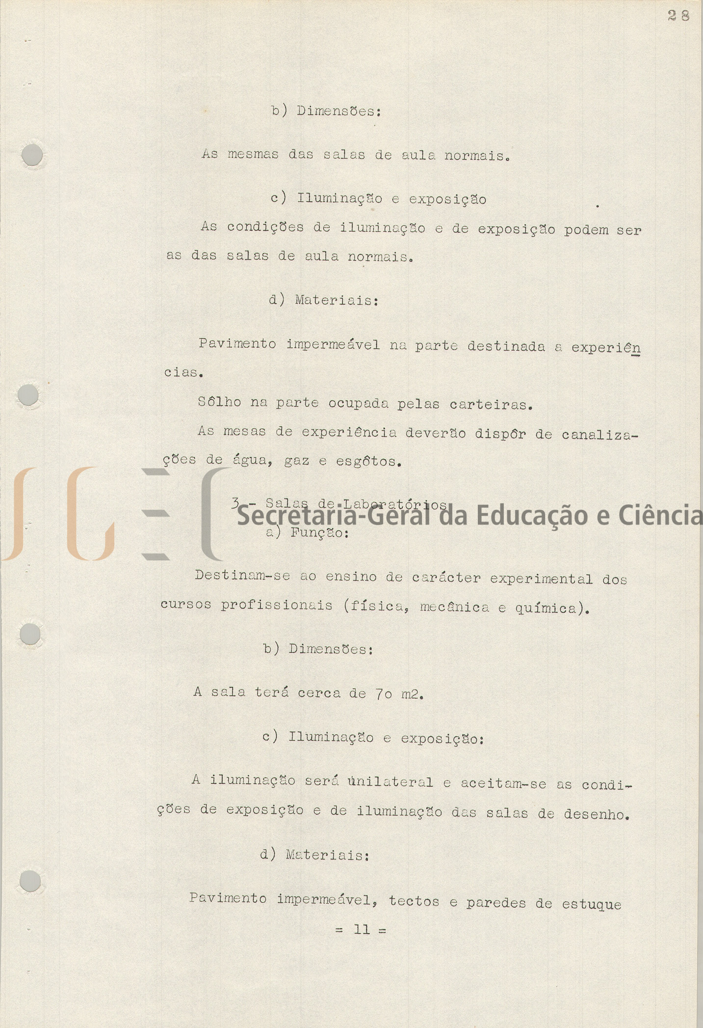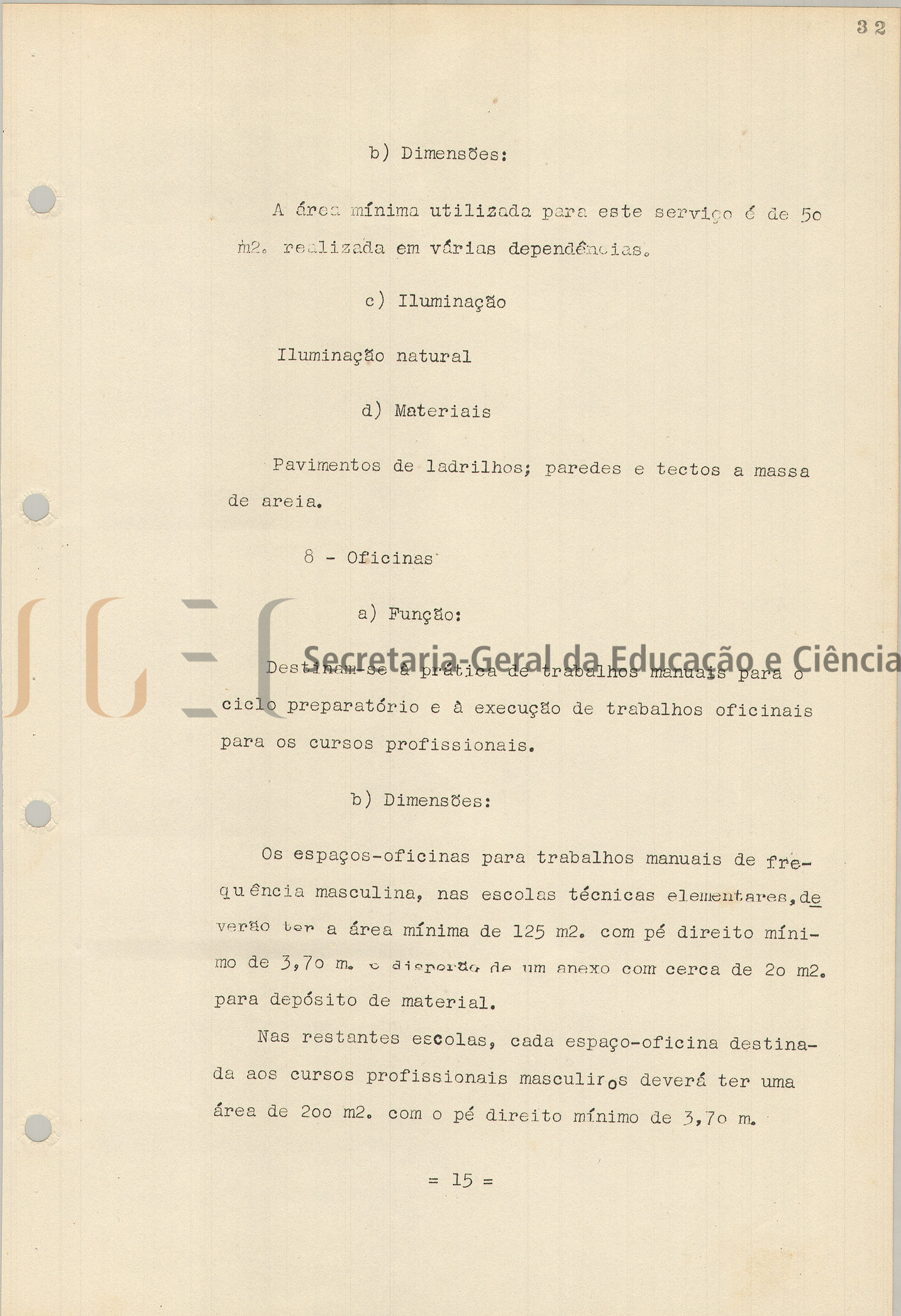 O projeto compõe-se de 3 corpos: corpo de aulas, corpo de oficinas e corpo de Educação Física. Cumpre as normas gerais para as instalações de escolas do ensino técnico profissional.