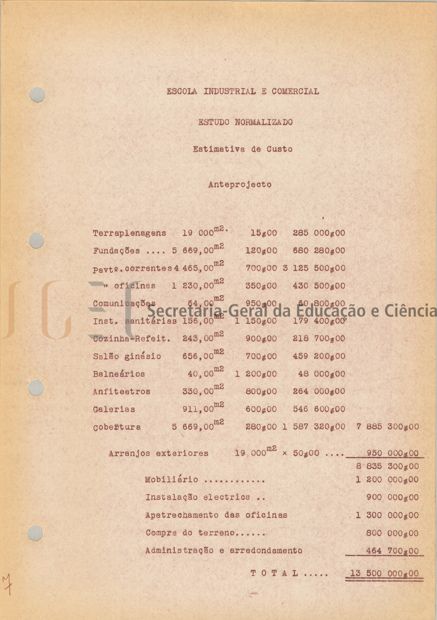Custo das instalações: 14500 contos;