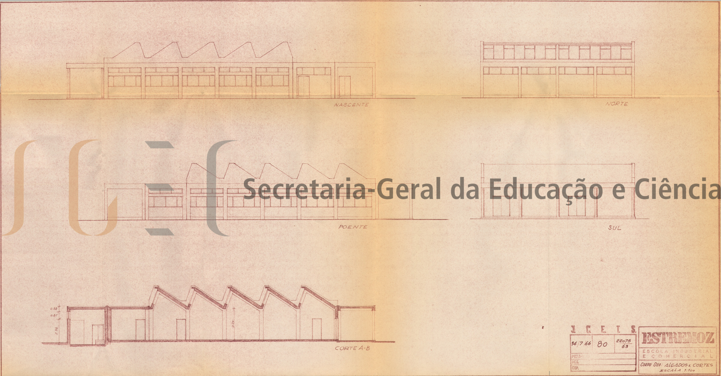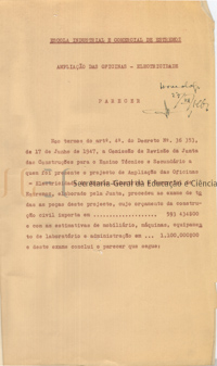 Âmbito e conteúdo Projeto de ampliação das oficinas e eletricidade da Escola Industrial e Comercial de Estremoz constituído por 1 volume de peças escritas e desenhadas (volume n.º 240) e inclui: parecer, com data de homologação de 27 de julho de 1966; memória descritiva e justificativa, com a mesma data de homologação; custo da obra; condições jurídicas administrativas; condições técnicas; medições; orçamento e 6 peças desenhadas, compostas por: ampliação do corpo O20; alçados e cortes; elementos de construção e betão armado.