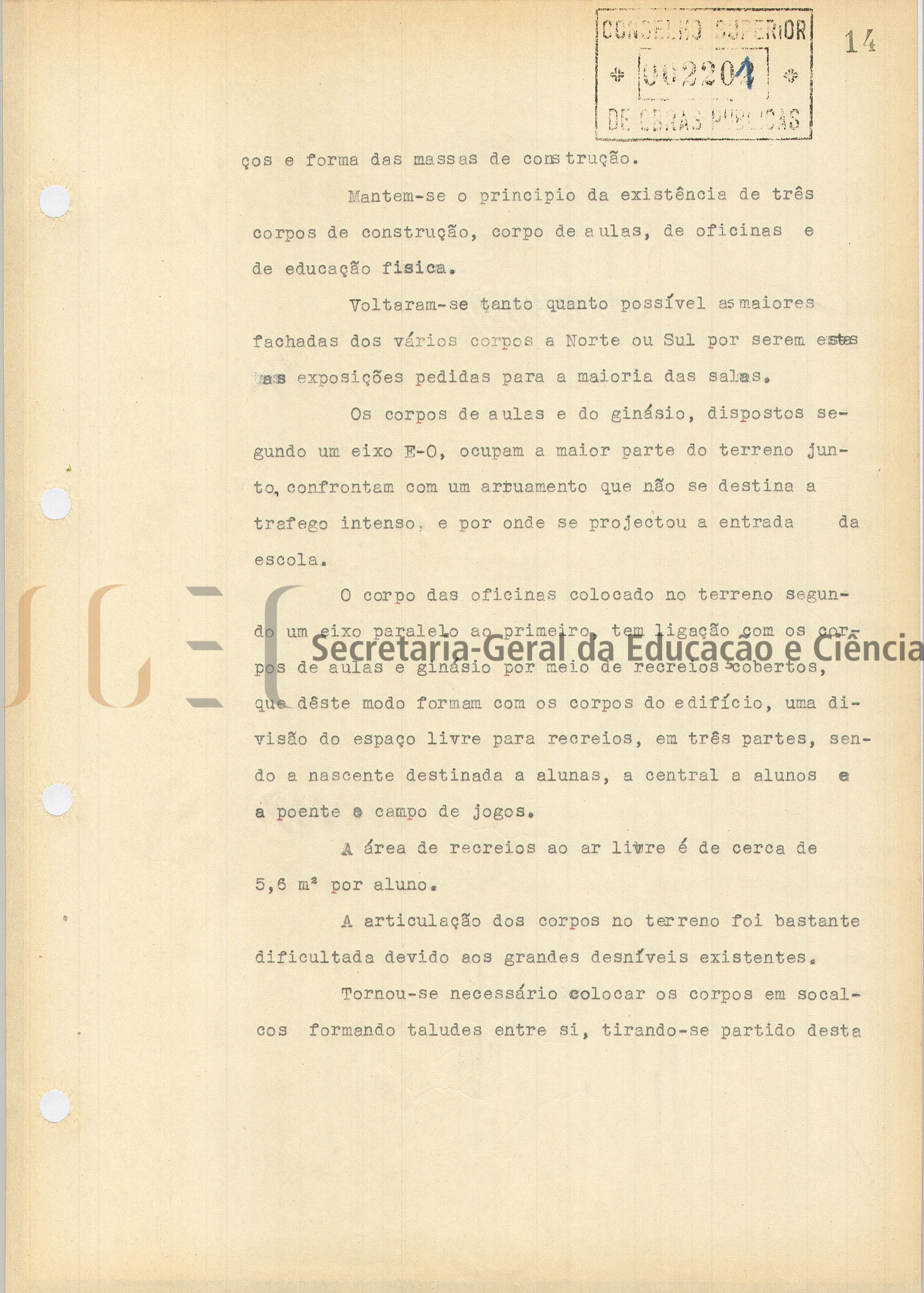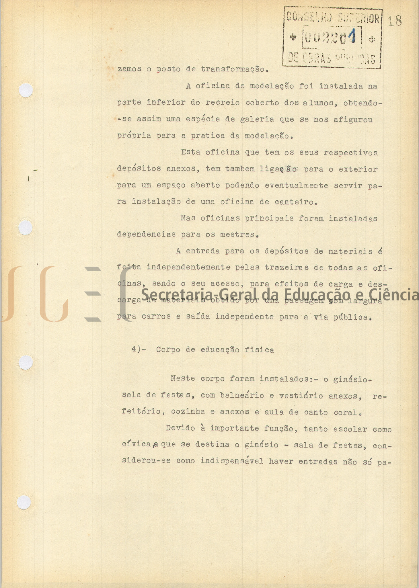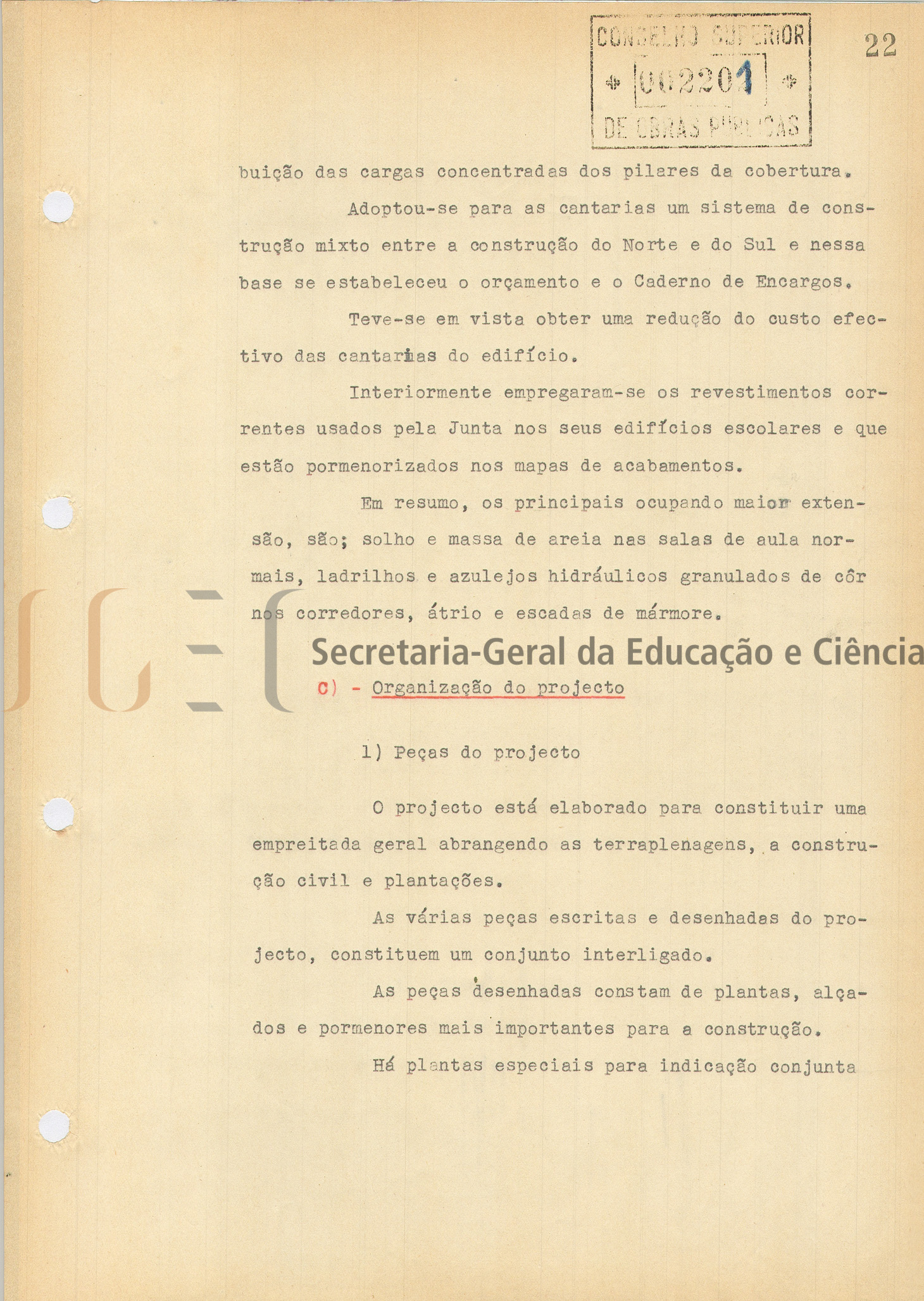 O volume das peças desenhadas inclui: índice; parecer, com data de 29 de maio de 1951; memória descritiva e justificativa; planta de sondagens para as fundações e de localização do edifício e futuros arruamentos; custo da obra; programa das instalações das escolas do ensino técnico profissional; mapa de acabamentos; cálculos da cobertura; cálculos do betão armado; caderno de encargos; medições; mapa de medições e orçamento.