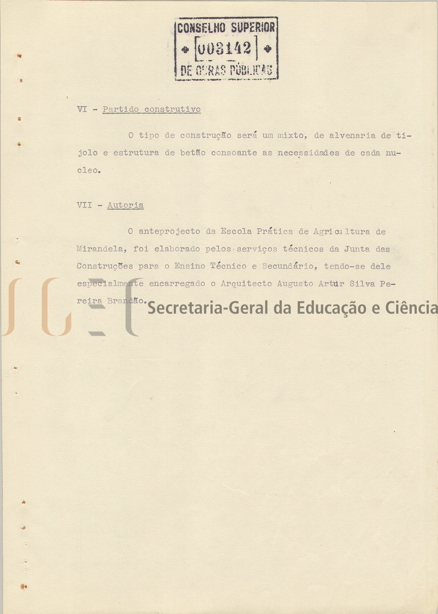 Âmbito e conteúdo Anteprojeto constituído por peças escritas e desenhadas (volume n.º 133A) e inclui: parecer, com data de visto de 12 de abril de 1962, com pequenos reparos, que poderiam facilitar os serviços orgânicos escolares; memória descritiva e justificativa, com a mesma data de visto do parecer, a Escola Prática de Agricultura de Mirandela foi criada por Decreto n.º 42.739 de 18 de dezembro de 1959, a fim de descongestionar a única Escola Prática de Agricultura do Norte do país, a de Santo Tirso (o Governo adquiriu o terreno da quinta dos Carvalhais); normas gerais para as instalações das escolas do ensino técnico profissional; estimativa de custo e 16 peças desenhadas compostas por: planta geral; plantas dos vários pavimentos; coberturas e alçados.