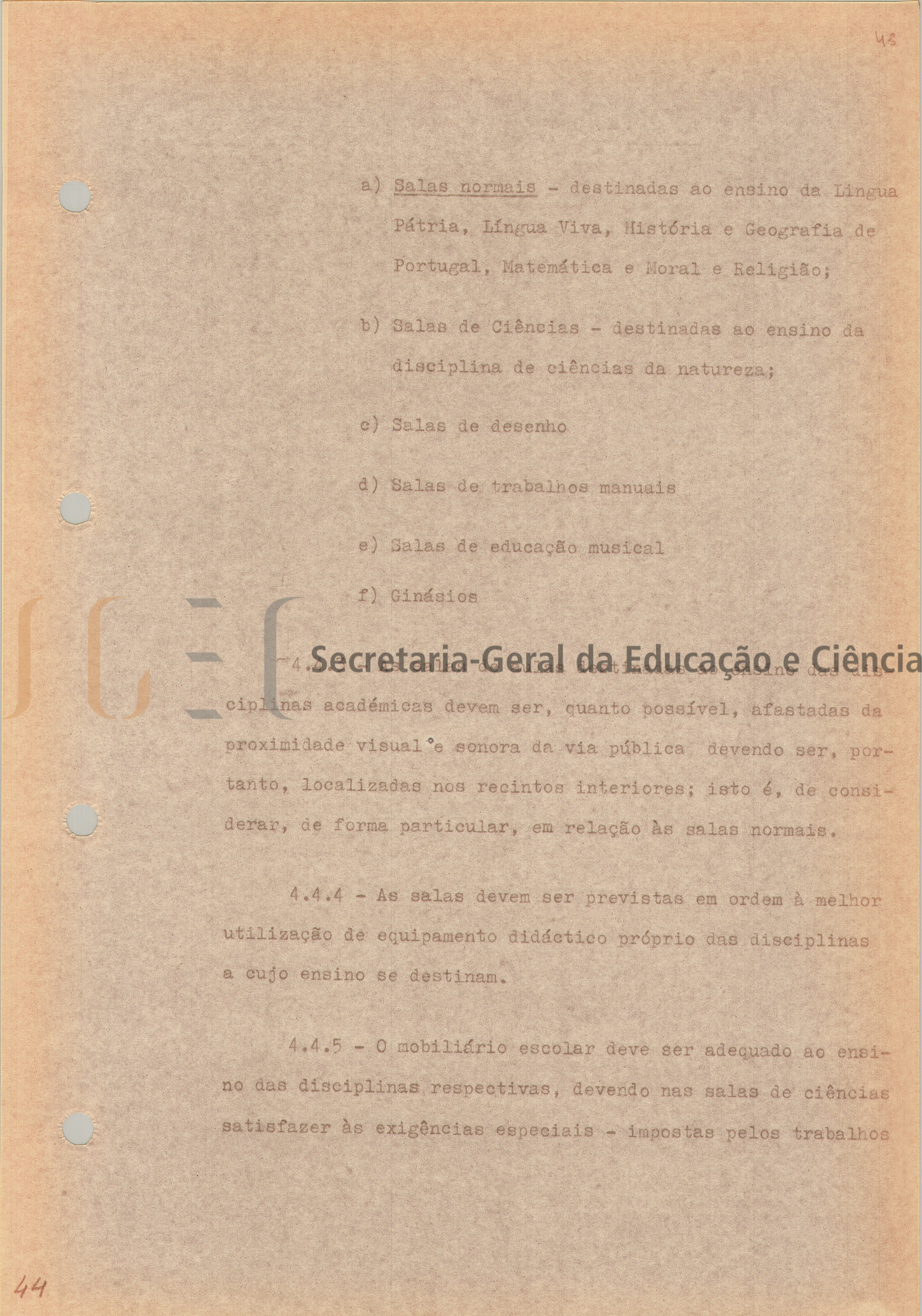 Discriminação das dependências: 18 salas de aula normais, 5 salas de desenho, 5 salas (oficinas) de trabalhos manuais, 4 salas de ciências naturais, 2 salas de educação musical, 4 salas de estar (tipo biblioteca), 4 gabinetes de professores, refeitório com anexos, instalações para actividades circum-escolares, sala polivalente, museu, biblioteca, serviços administrativos e docentes."