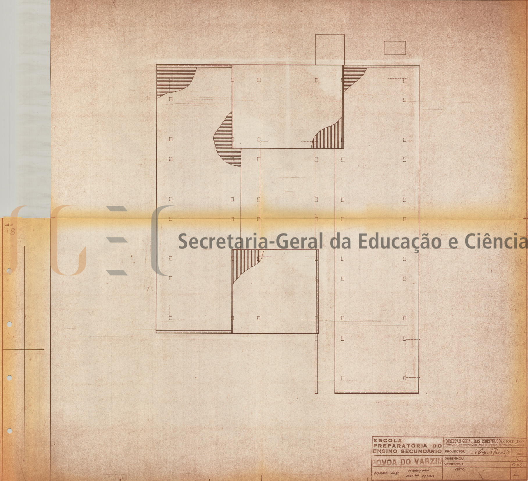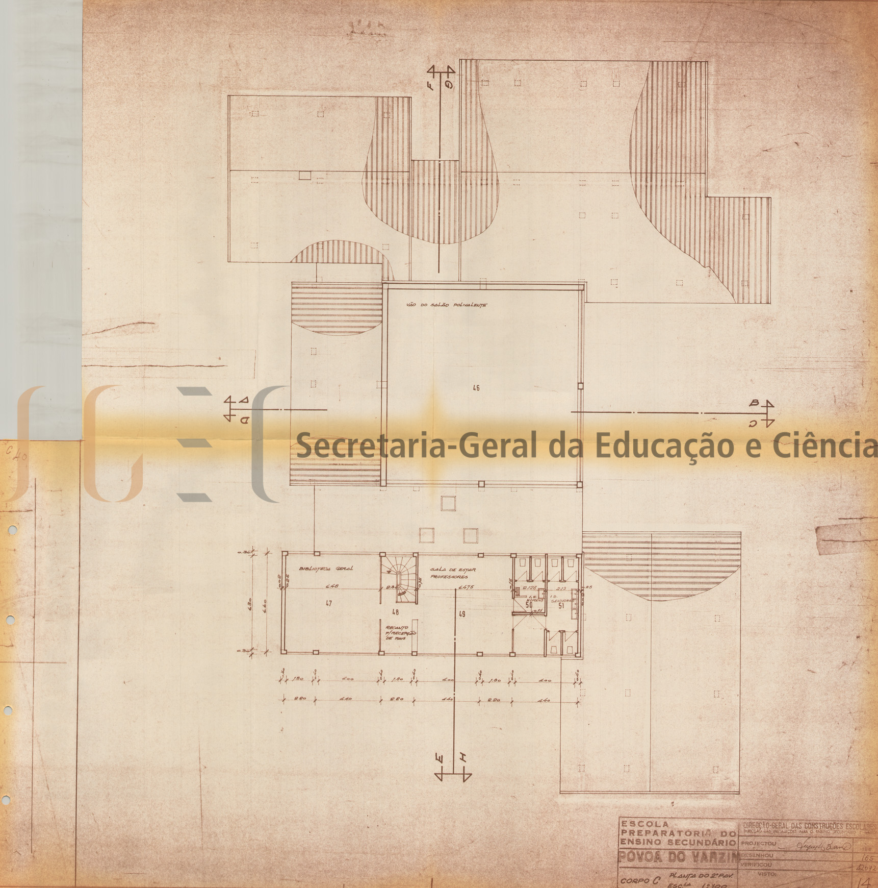 Na planta de localização verifica-se que ainda não existe um pavilhão de aulas, a zona de impantação tem a indicação de área livre.