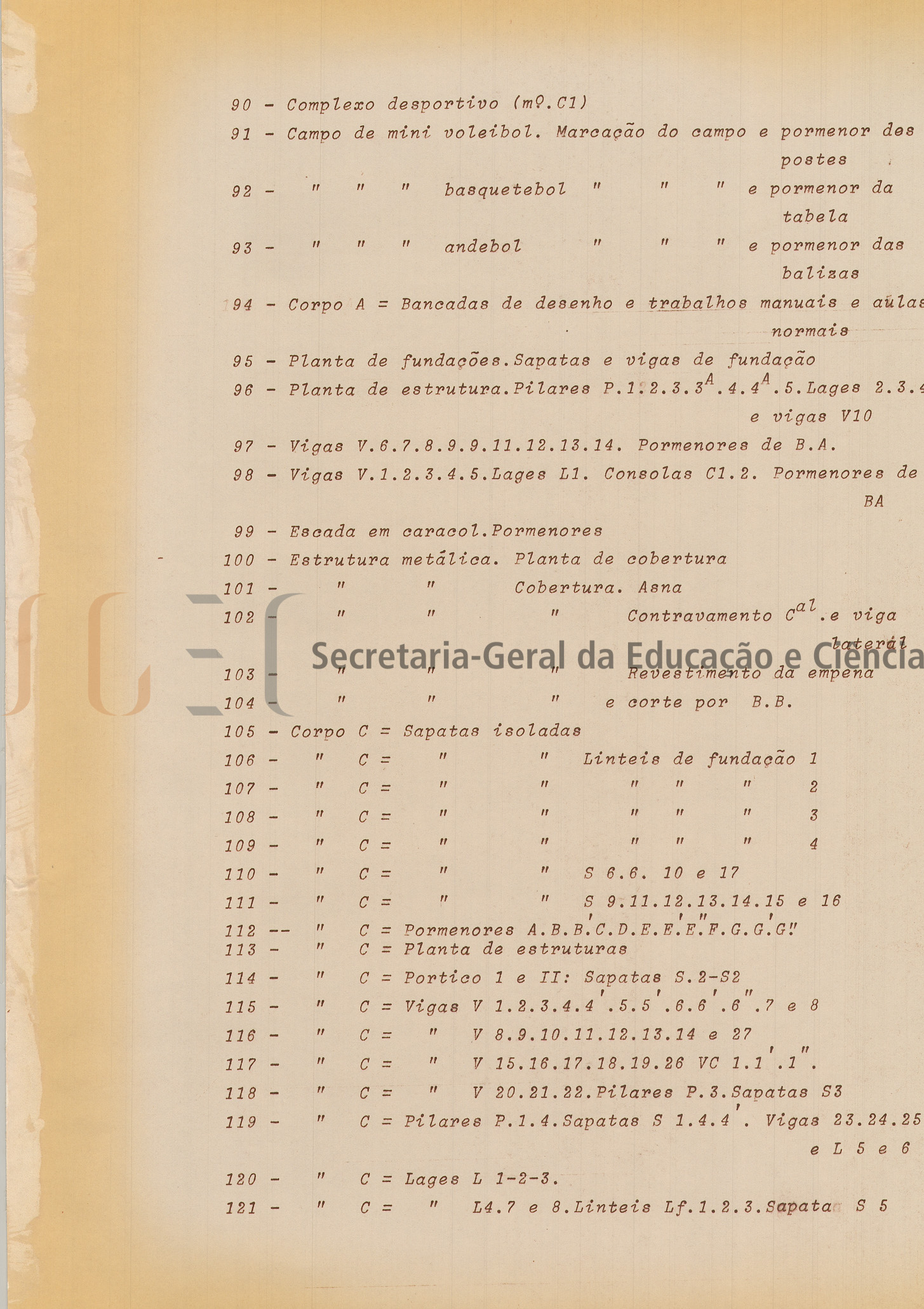 O volume das peças desenhadas é composto por 145 peças e inclui: índice; planta de localização; planta geral; planta do pavimento; alçados; cortes; pormenores construtivos e projeto de estrutura.