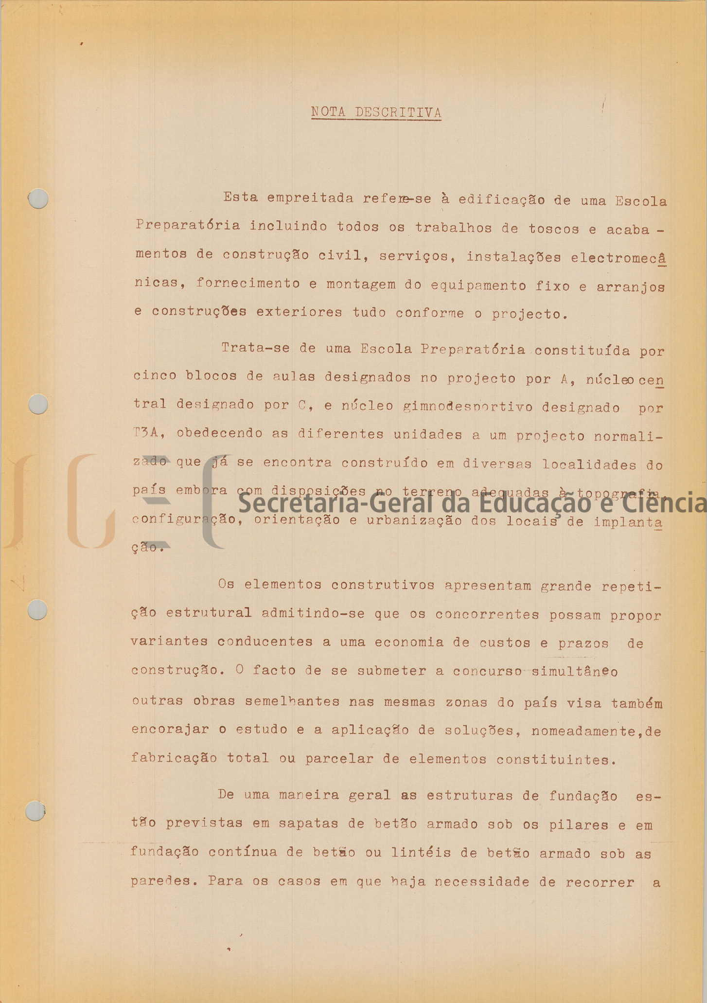 Projeto de arquitetura constituído por peças escritas (volume n.º 624) e peças desenhadas (volume n.º 625).