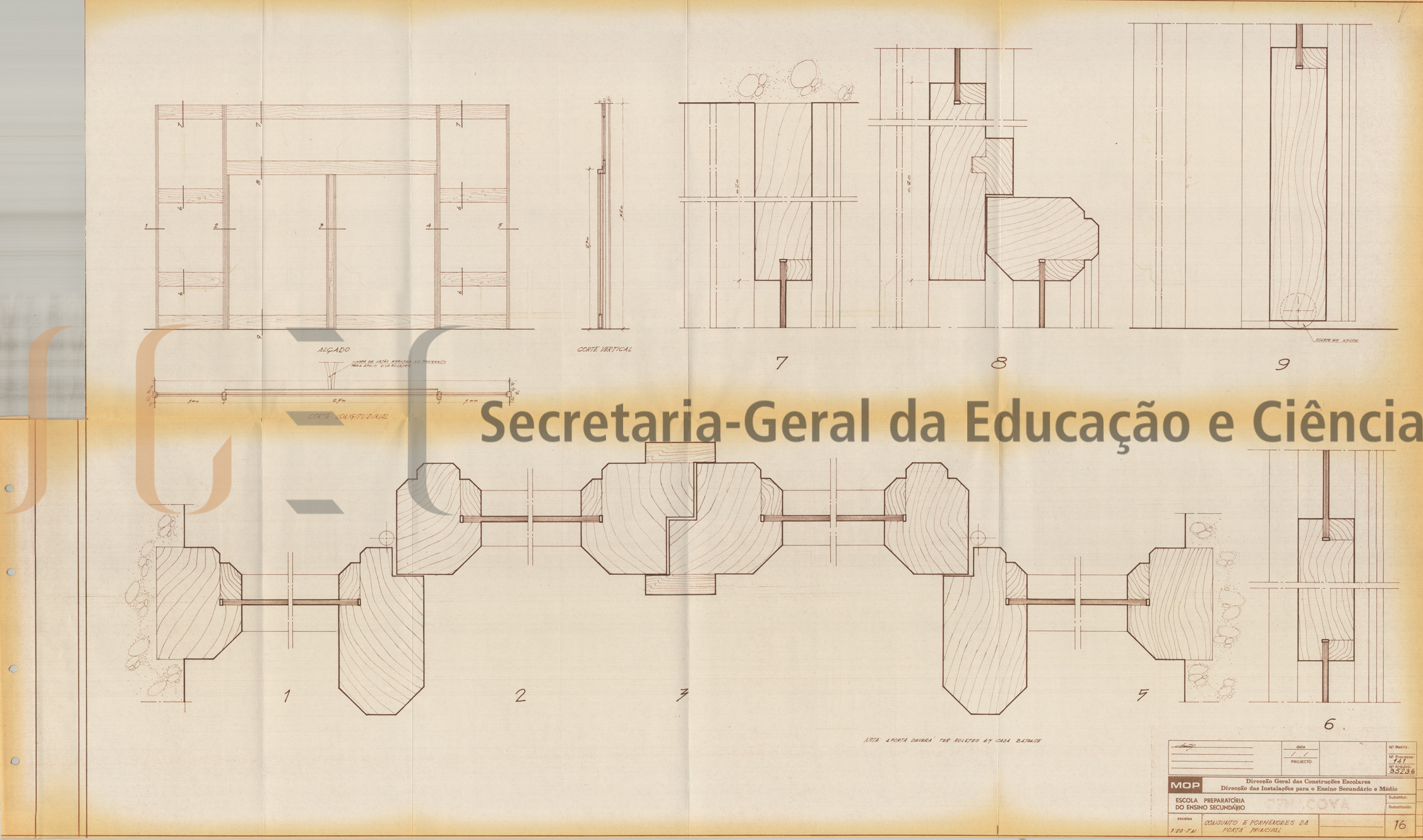 Âmbito e conteúdo Projeto constituído por 1 volume de peças desenhadas (volume n.º 236), composto por 21 peças e inclui: índice; planta do terreno; plantas dos vários pavimentos; alçados; cortes; redes de águas; redes de esgotos; elementos de construção e pormenores.