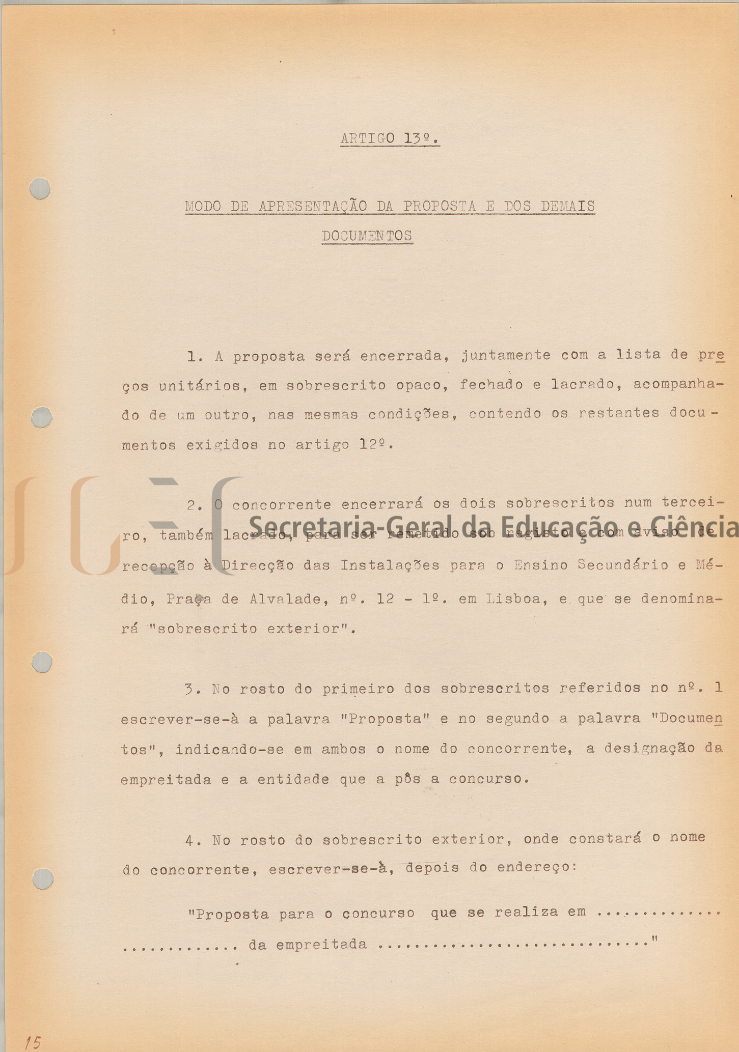 O volume das peças escritas inclui: programa de concurso, com indicação de que o processo de empreitada das obras se refere à Escola Preparatória de Cantanhede à Escola Preparatória de Ovar; nota descritiva; mapas de medições; orçamento; caderno de encargos (cláusulas jurídicas especiais e cláusulas técnicas especiais).