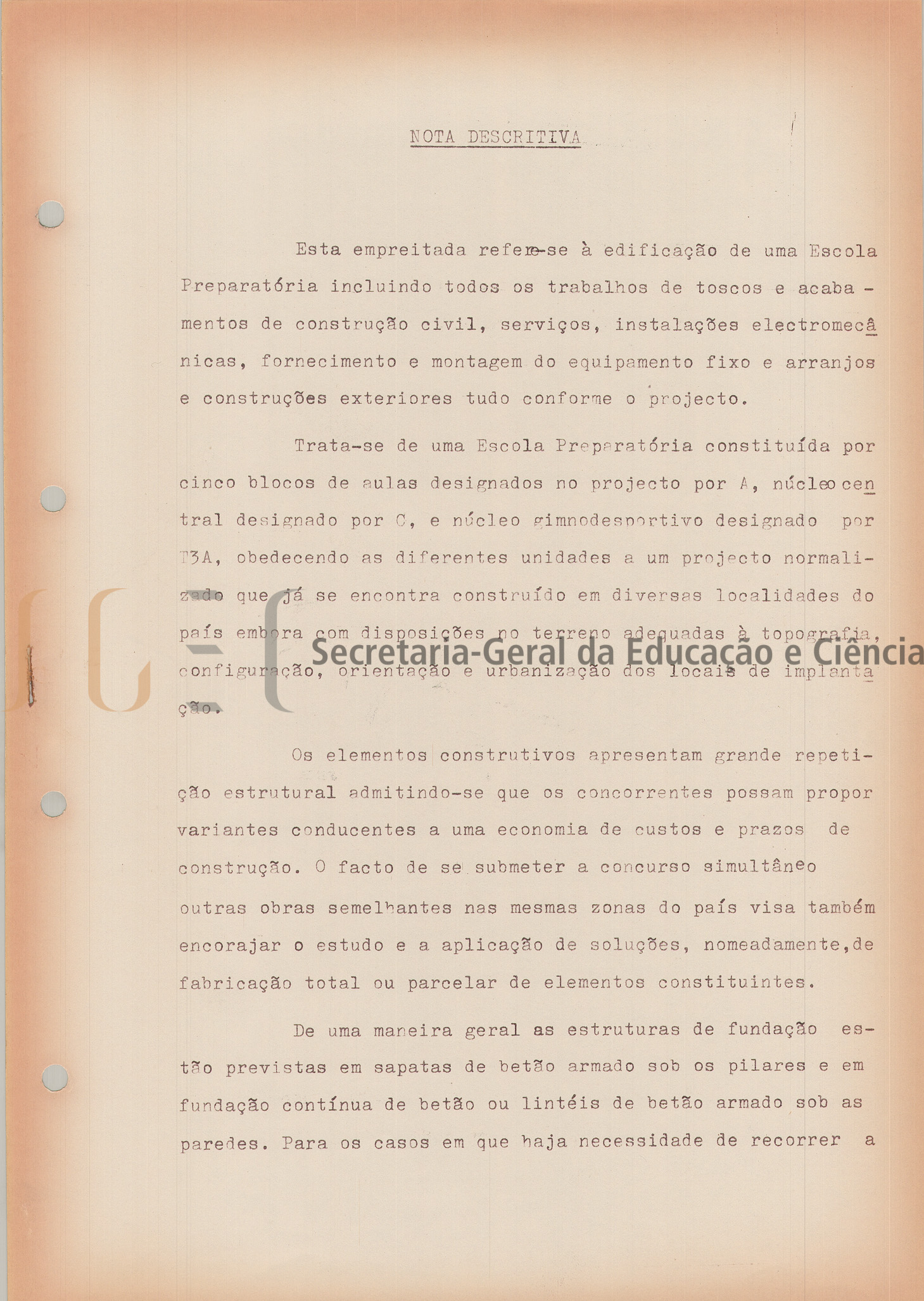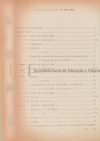 O volume das peças escritas inclui: programa de concurso da empreitada das obras de construção civil e instalação elétrica da Escola Preparatória de Portimão e da Escola Preparatória de Tavira; nota descritiva; mapas de medições; orçamento e caderno de encargos (cláusulas jurídicas e técnicas gerais; cláusulas jurídicas especiais e cláusulas técnicas especiais).