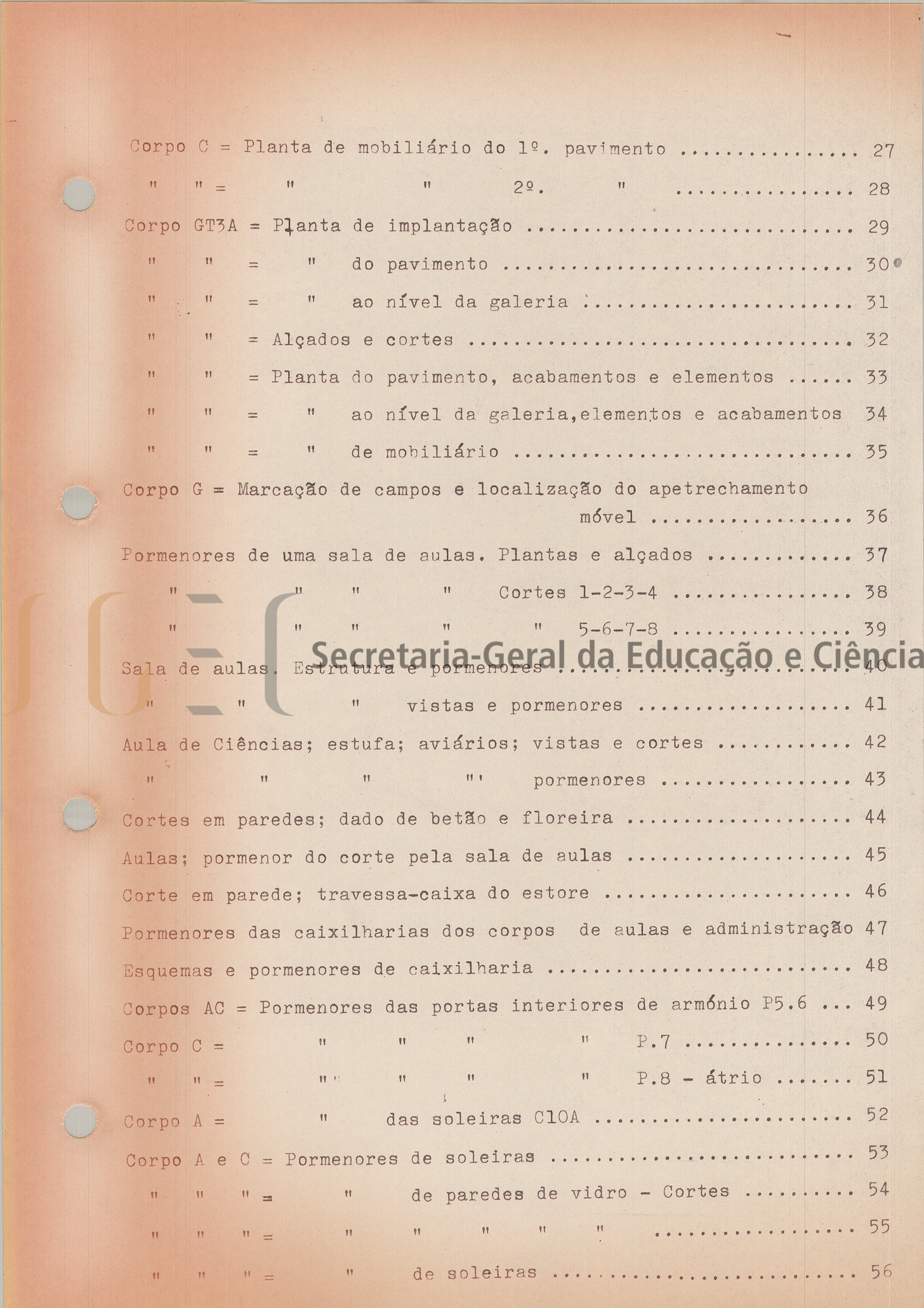 O volume n.º 316 é composto por 107 peças e inclui: índice; planta de localização; planta geral; plantas dos vários pavimentos; coberturas; alçados; cortes; mobiliário; elementos de construção; estruturas e pormenores (caixilharias; portas; paredes de vidro; salas de aula; armários; escadas; vestiários; cozinha...).