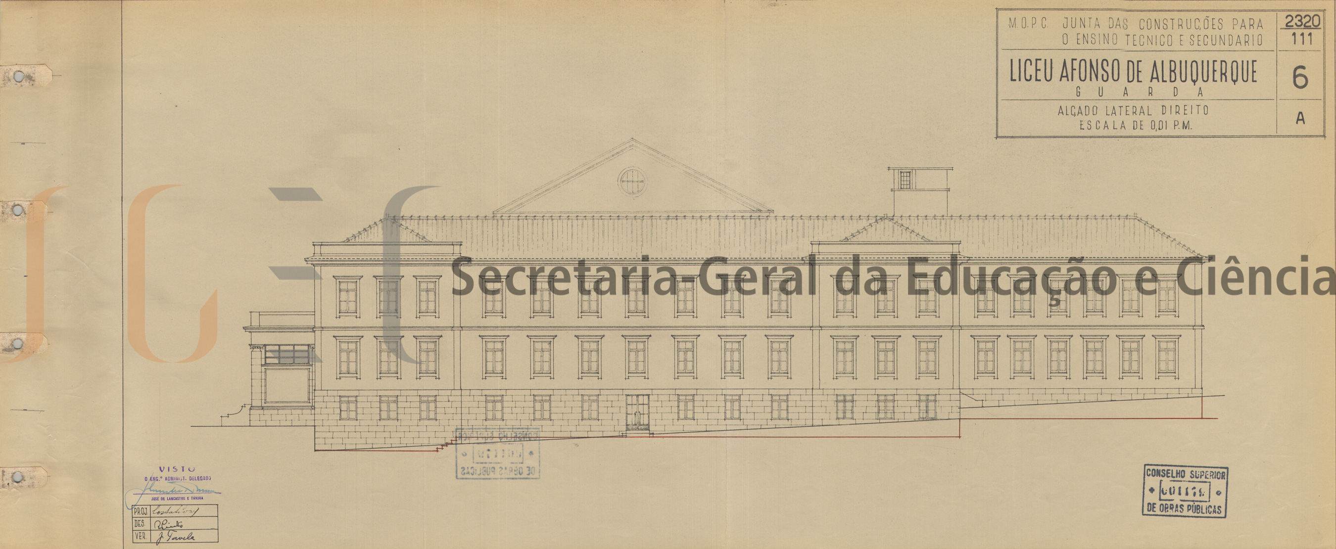 Projecto de ampliação desenvolvido no âmbito do Plano para a construção de novos Liceus (Decreto-lei n.º 28604, de 21 de Abril de 1938).