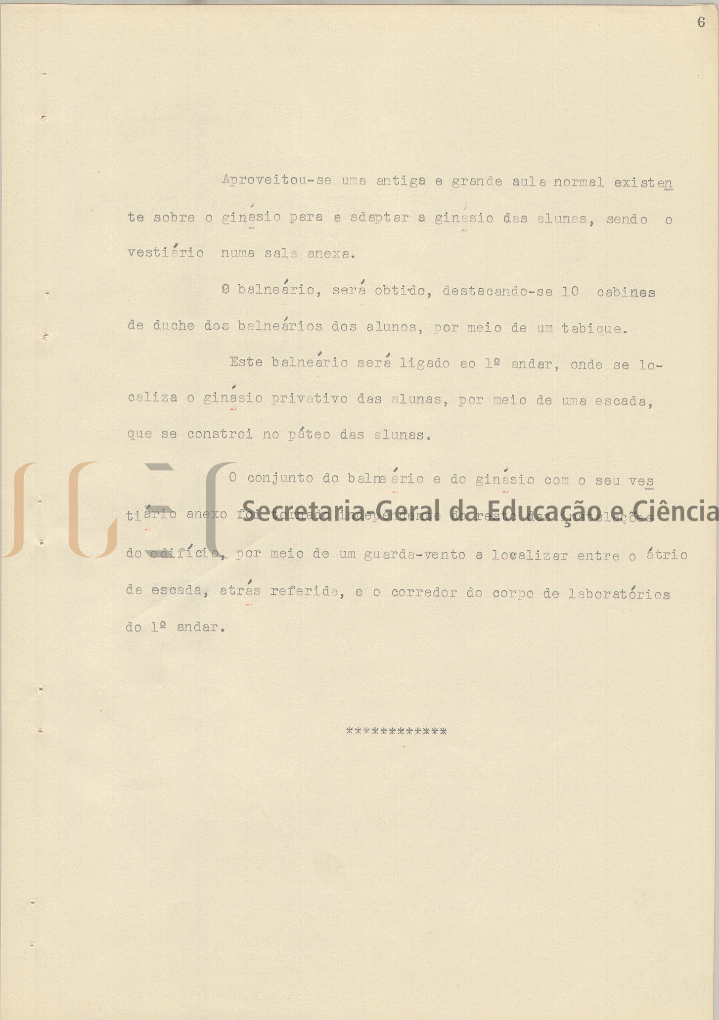 O volume das peças escritas inclui: índice; parecer, com data de homologação de 1 de fevereiro de 1961; memória descritiva e justificativa (a ampliação projetada beneficia o edifício de mais aulas normais, de desenho e de instalações para o ginásio das alunas); custo da obra; cálculos de estabilidade e betão armado; caderno de encargos; medições e orçamento.