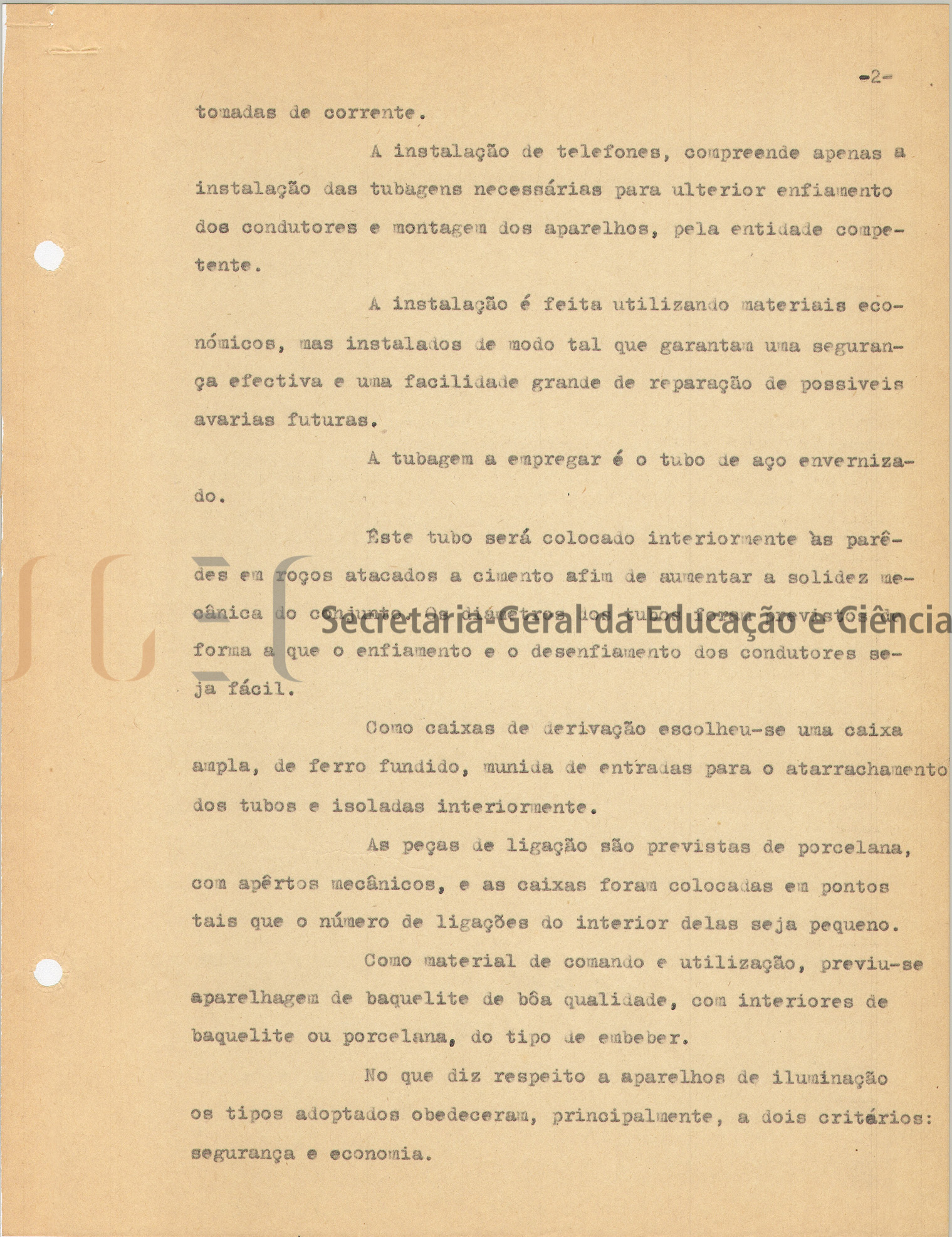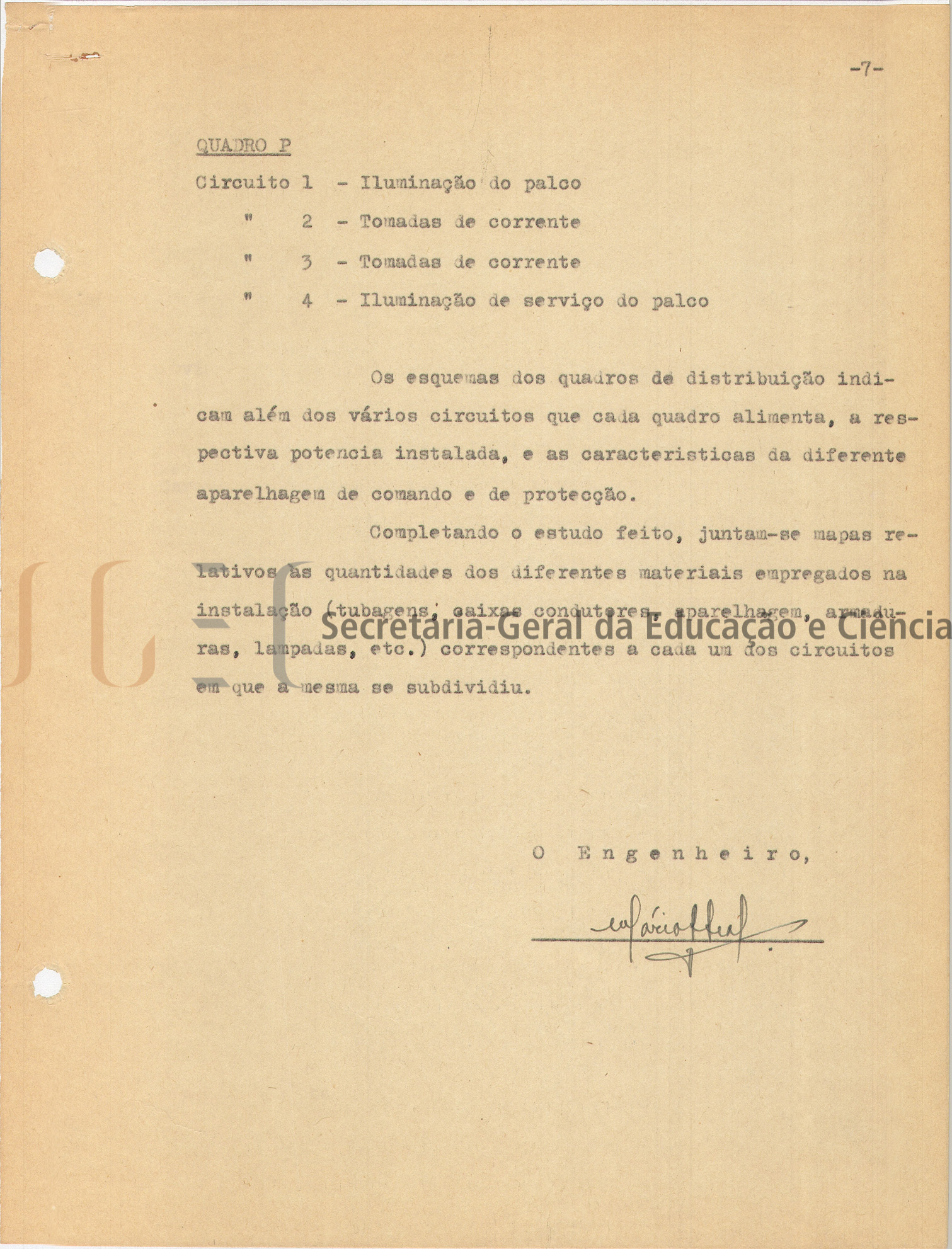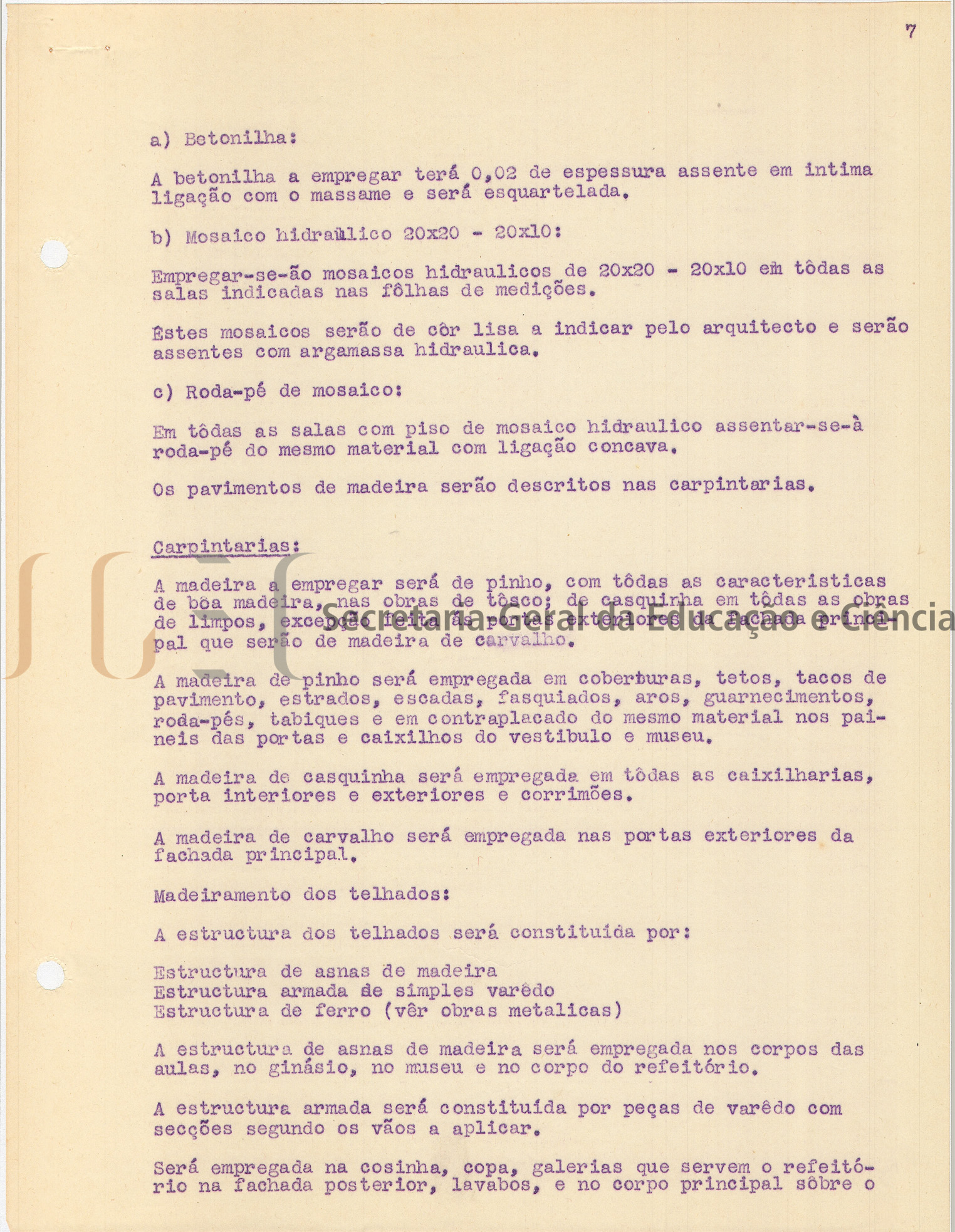 O volume das peças escritas (volume n.º 463) inclui: memória descritiva e justificativa, com data de 25 de fevereiro de 1944; cálculos de estabilidade; instalação elétrica; condições especiais; caderno de encargos.