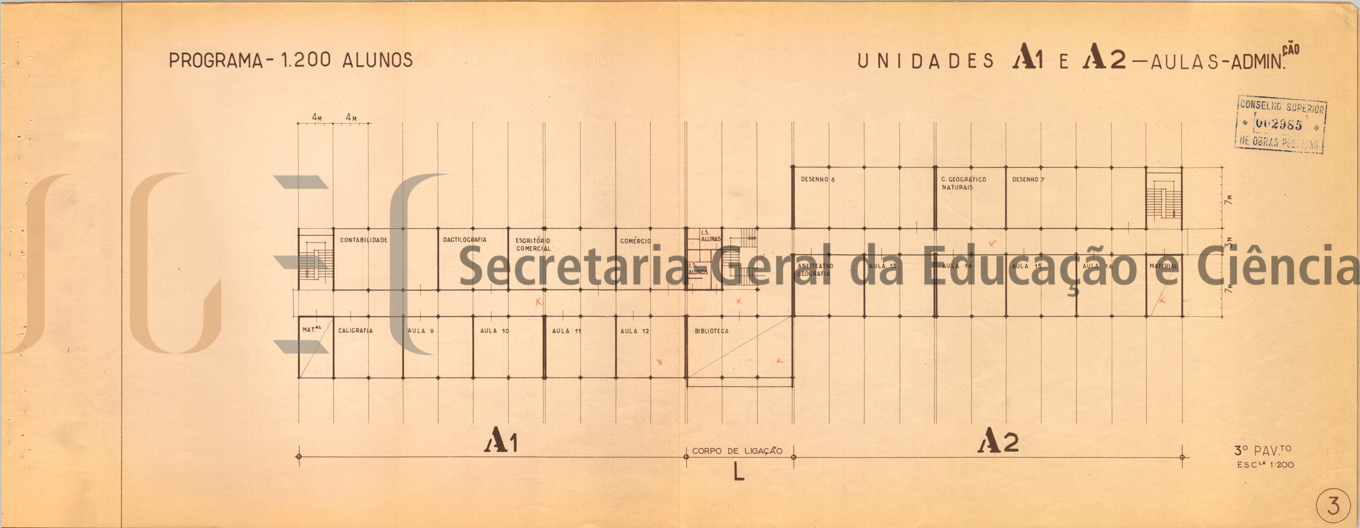 Estudos de Normalização é constituído por 1 volume de peças escritas e peças desenhadas, com carimbo do Conselho Superior de Obras Públicas n.º 002985 (volume tem uma etiqueta redonda com indicação 4 de 4) e inclui: ofício entre o Presidente da Junta das Construções para o Ensino Técnico e Secundário, José de Lencastre e Távora, e o ministro da obras públicas, com a apresentação dos projetos das Escolas das Caldas da Rainha, de Estremoz, de Évora, de Famalicão, do Montijo, de Moura, de Pombal, de Santarém, de Torres Vedras, de Viana do Castelo e de Vila Real de Santo António, elaborados com base nos estudos de normalização aprovados por despacho de 21 de junho de 1959; memória descritiva com o objetivo dos estudos; índice dos desenhos e 30 peças desenhadas compostas por: plantas para o programa de 1200 alunos com os vários pavimentos; plantas para o programa de 800 e 1200 alunos com o corpo de ligação, vários pavimentos; instalações da mocidade portuguesa; plantas de implantação das diversas unidades para as escolas já referidas; alçados e cortes dos 2 programas (800 a 1200 alunos).